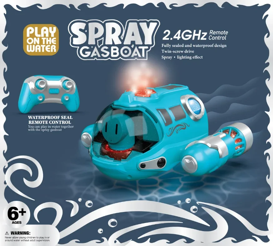 2.4G Remote Control Motorboat Waterproof Spray Swimming Pool Bathing RC Steamboat Toy For Boys And Girls Children Christmas Gift
