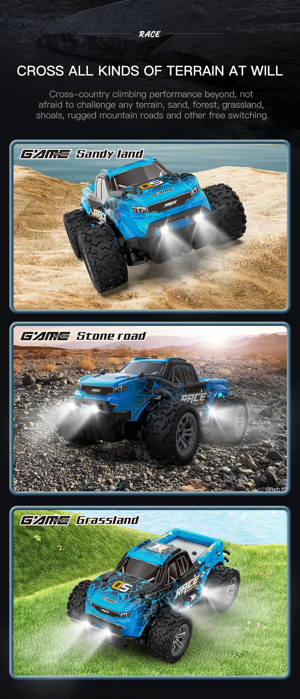 1:16/1:20 2.4G Model RC Car With LED Light 2WD Off-road Remote Control Climbing Vehicle Outdoor Cars Toy Gifts for Kids