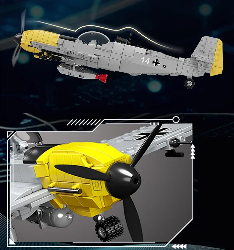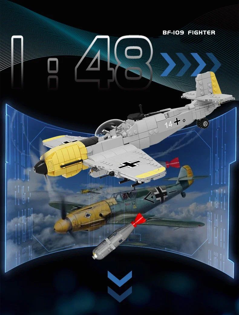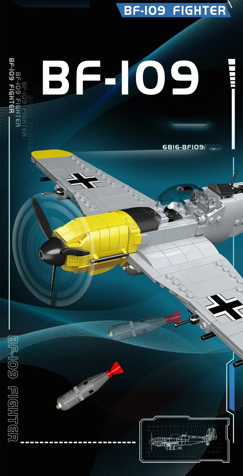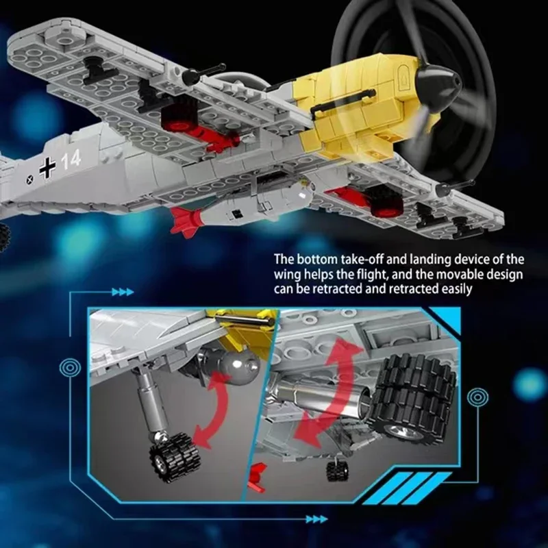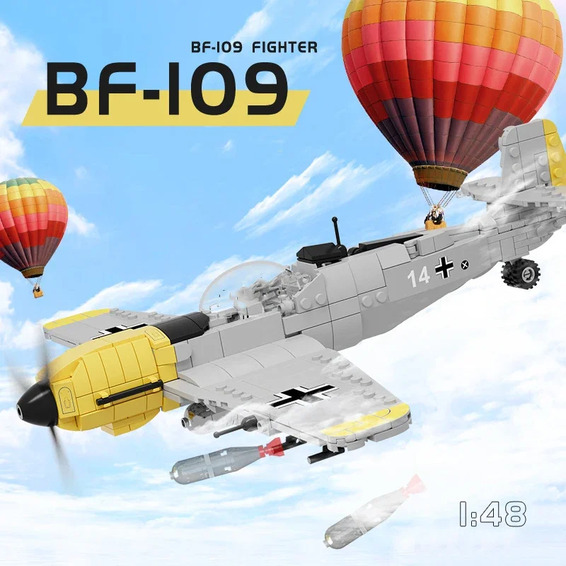 471pcs 1:48 Army GE BF-109 Fighter Building Blocks ww2 Military Soldier Figures Weapon Airplane Bricks Toys For Children