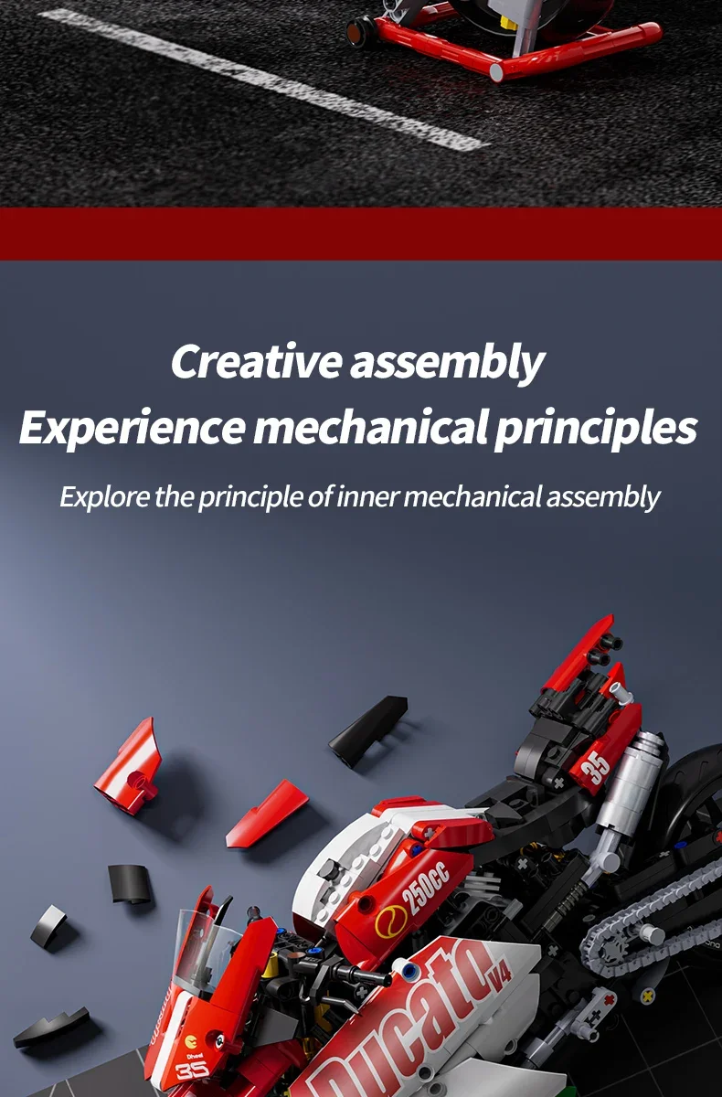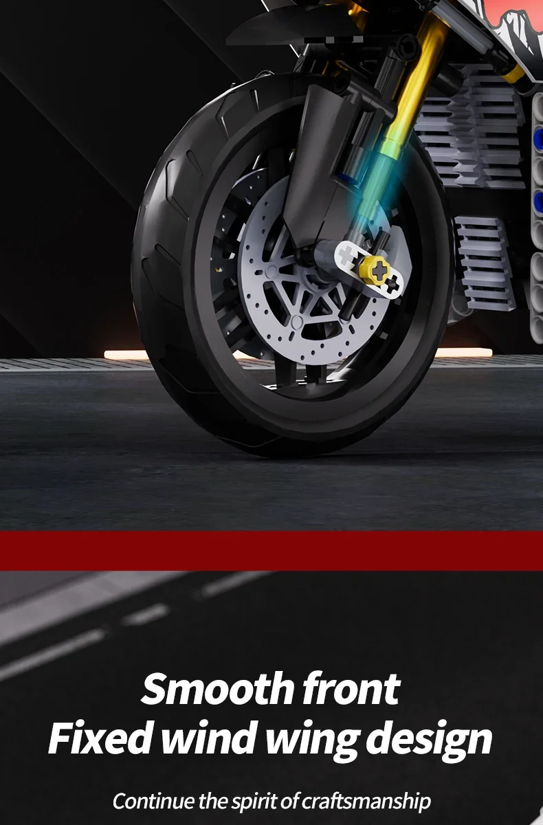 Setting itself apart from traditional motorcycles, this model employs a realistic rotary engine instead of the common piston engine, adding a unique technological charm and visual highlight to the product. For enthusiasts of brick-built motorcycles, this undoubtedly stands out as one of the most appealing choices.