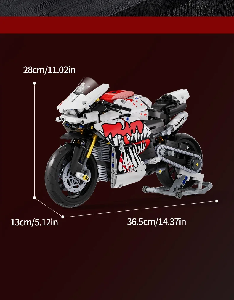 883pcs Bricks, Build a Stylish 1:10 Motorbike Display Model, Collectible Building Set Has a Cool Design Kit for Kids Or Adults