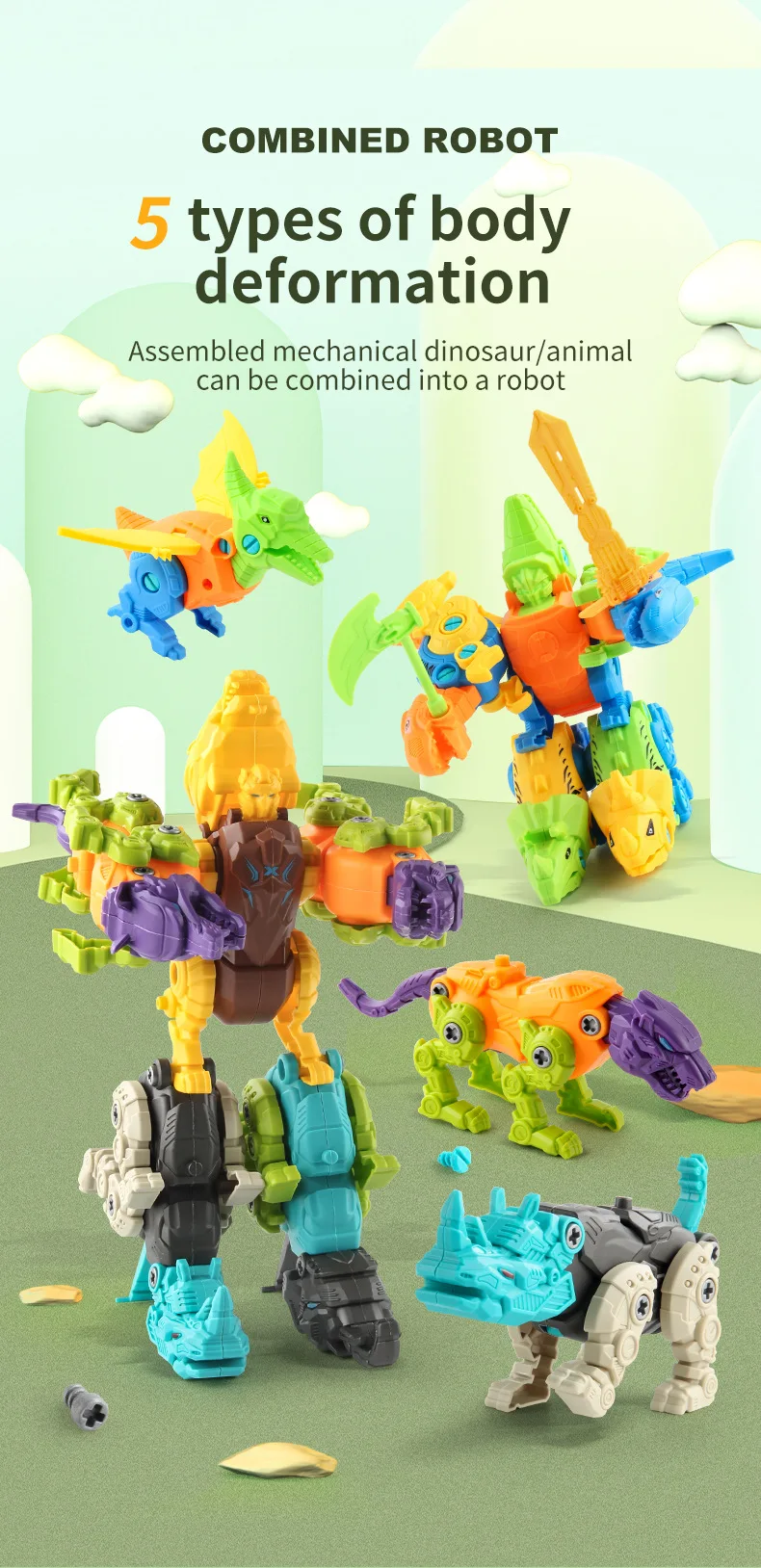 Children’s Jurassic Animal Assembly Dinosaur Triceratops Twisting Screws, Dismantling and Dismantling Boy Toys
