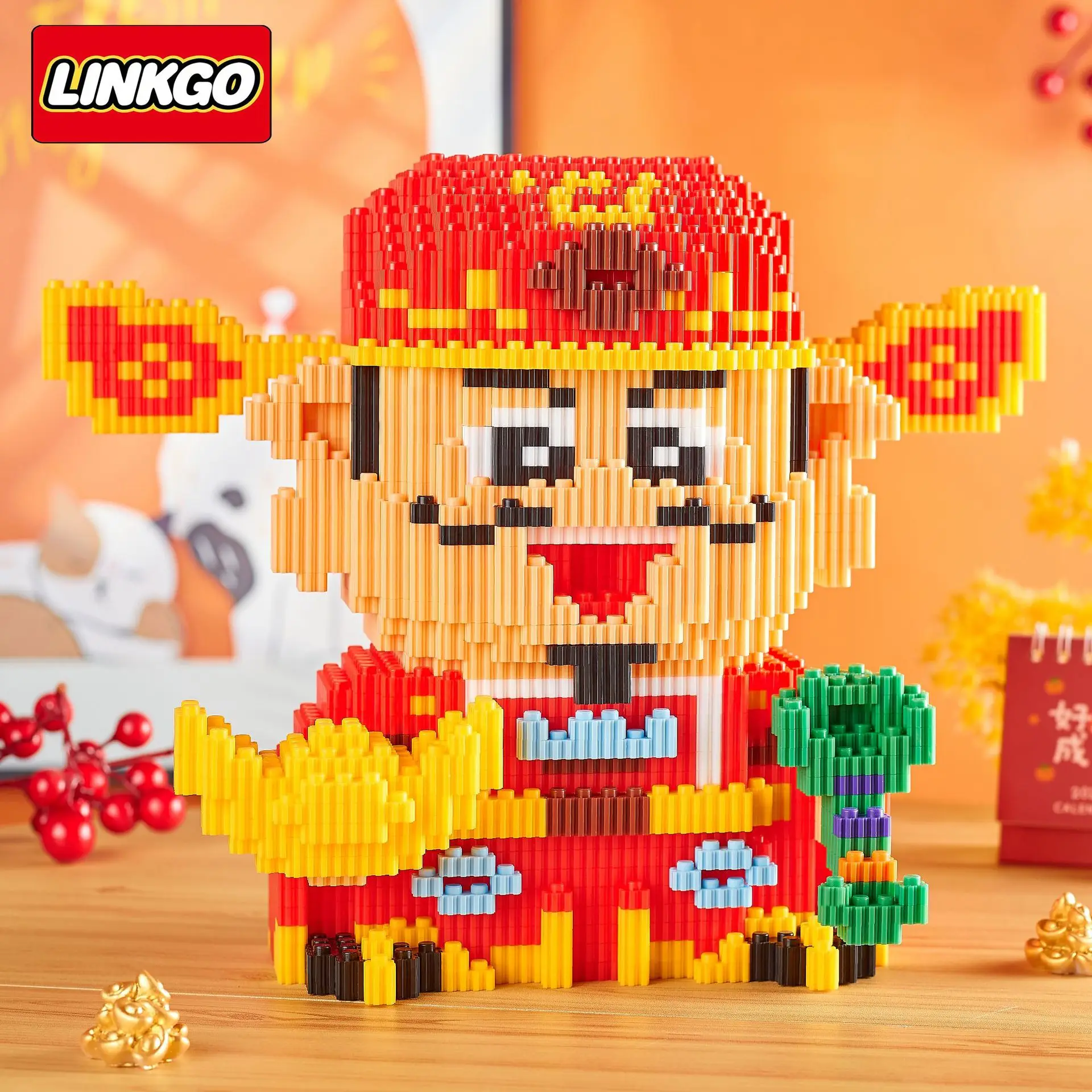 Diamond Building Block Lucky Cat Rich Cat Connection Model God of Wealth Mini Bricks Figure Toy For Gift