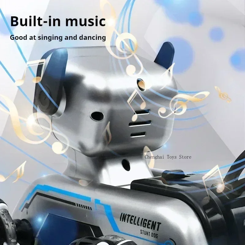 Cross-Border 25cm Interactive Tamagotchi Toy Dog with Music and Lights for Kids 8 Wheel Stunt Mechanical Dog Remote Control Car