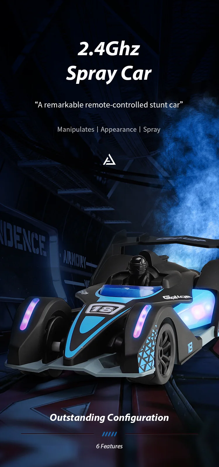 F1 spray drift racing lights high-speed music 2.4g remote control car children’s electric toy car