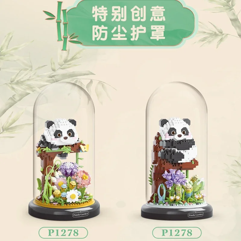 Flower Bouquet Dust Cover Panda Set Building Blocks Bonsai Collection Cute Animal Educational Toys Model Kids Christmas Gift