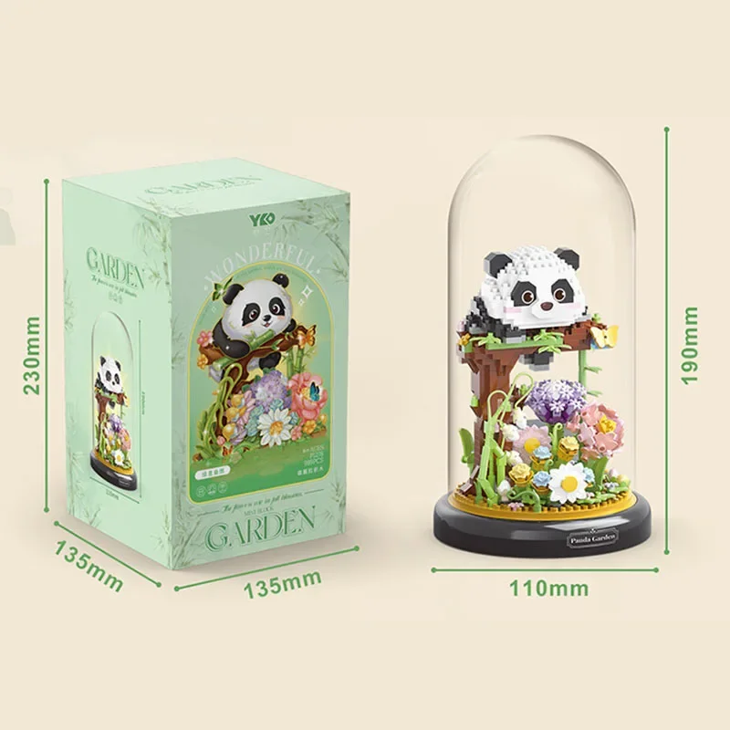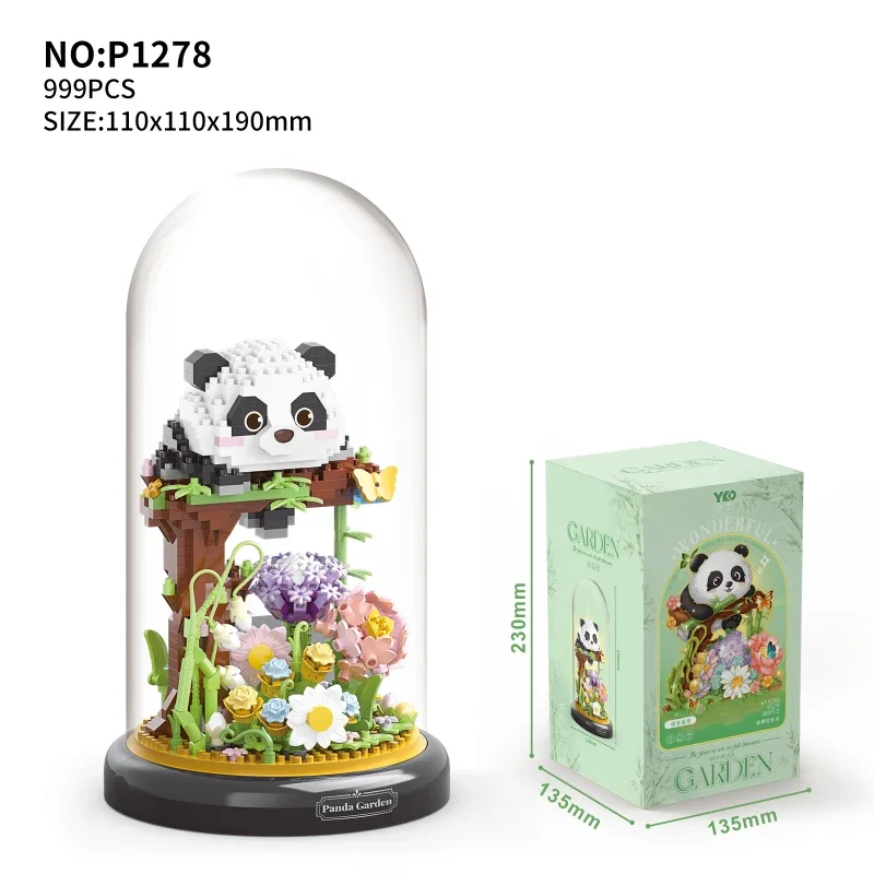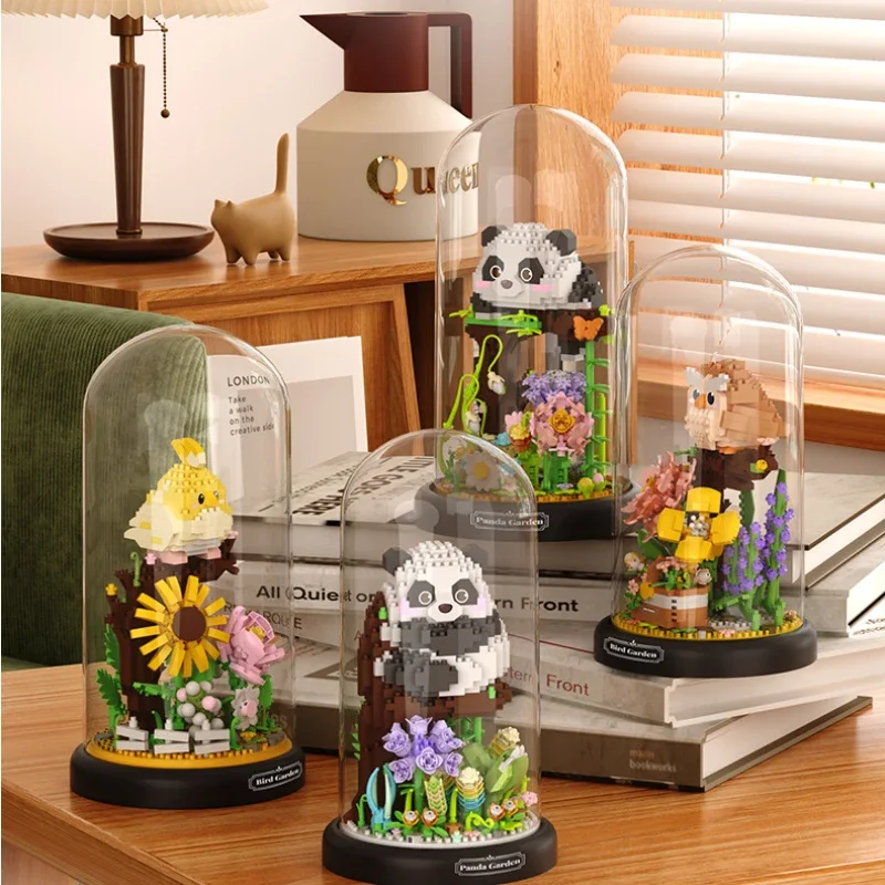 Flower Bouquet Dust Cover Panda Set Building Blocks Bonsai Collection Cute Animal Educational Toys Model Kids Christmas Gift