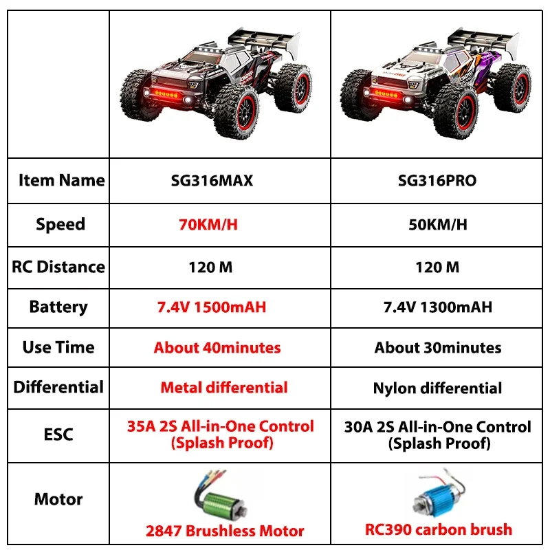 High-concerned chemical: None Is Electric: Lithium Battery Barcode: No Certification: CE Power: 70km/h State of Assembly: Ready-to-Go Flight Time: 30 minutes Remote Distance: 150 Is Batteries Included: Yes Scale: 1:16 Dimensions: 33*21.5*11.5 CM Model Number: SG316MAX/SG316PRO Package Includes: Original Box,Batteries,Operating Instructions,Remote Controller,USB Cable Control Channels: 4 channels Controller Mode: MODE2 Charging Voltage: 7.4V Remote Control: Yes Material: Metal,Plastic Recommend Age: 14+y Origin: Mainland China Type: Car Features: REMOTE CONTROL Design: Cars 1:16 70km/h or 50km/h 4WD RC CAR […]