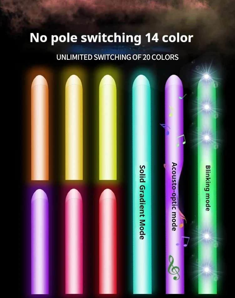 【 Function】: 20-color light effect + gravity sensing sound effect + explosion-flash mode + silent mode + two-in-one combination