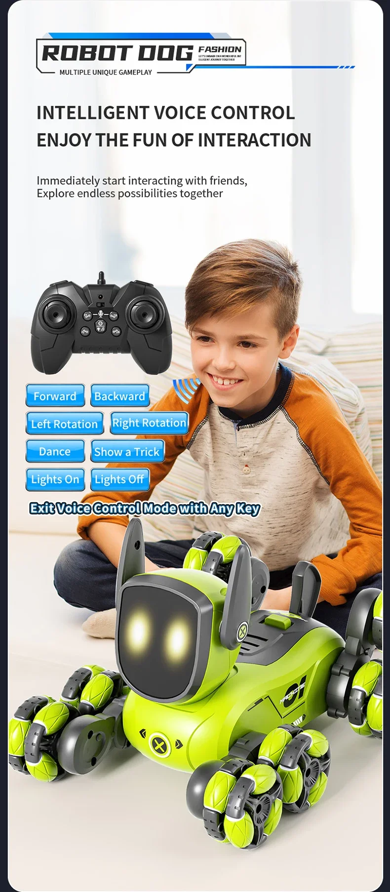 JJRC New Q200 Small Eight Wheel Gesture Sensing Multi functional Voice Interaction RC Stunt Machine Dog Children Toy