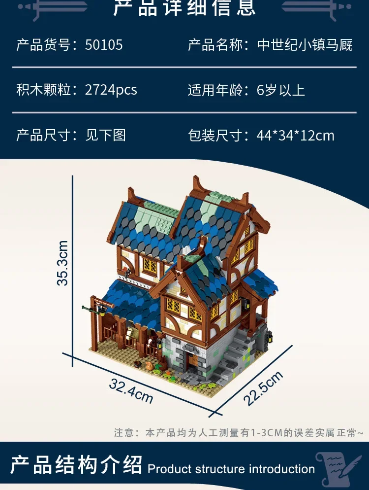 Medieval Series Town Stable Model Building Blocks City Horse House Bricks DIY Educational Toys Gifts for Children Friends2724PCS