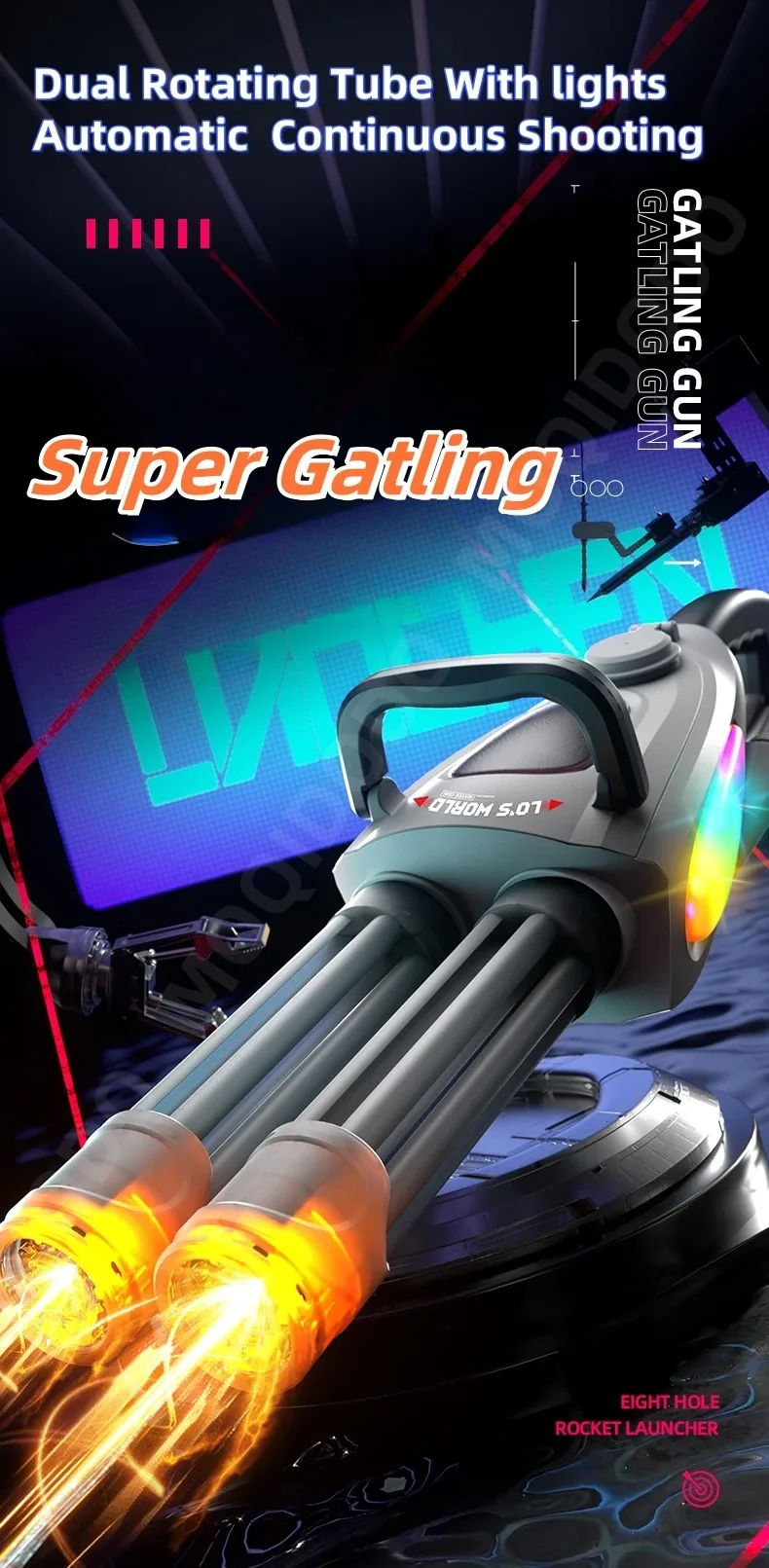 New Electric Gatling Water Gun Toy With LED Automatic Spray Water Pistol Blaster Cannon Pool Summer Toy for Kids Boys Adult Gift