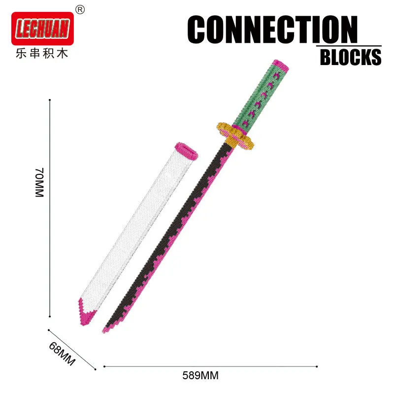 NEW Moc Animes Demon Knife Nichirin Blade Swords Frame Arms Equipage Accessories Game Model Toys Kids Kits Brick Building Block