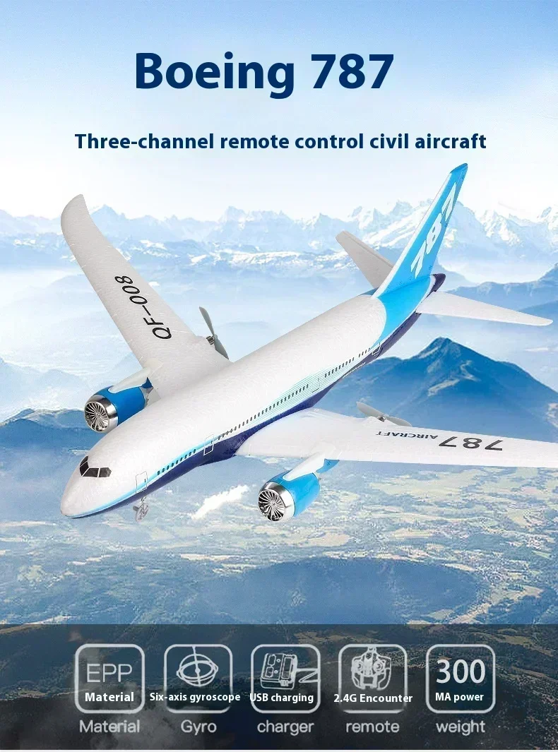 RC Boeing 787 Glider Qf008 2.4G Electric Remote Control Plane Three-Channel Fixed Wing Aircraft Passenger Jet Model Toy Kid Gift