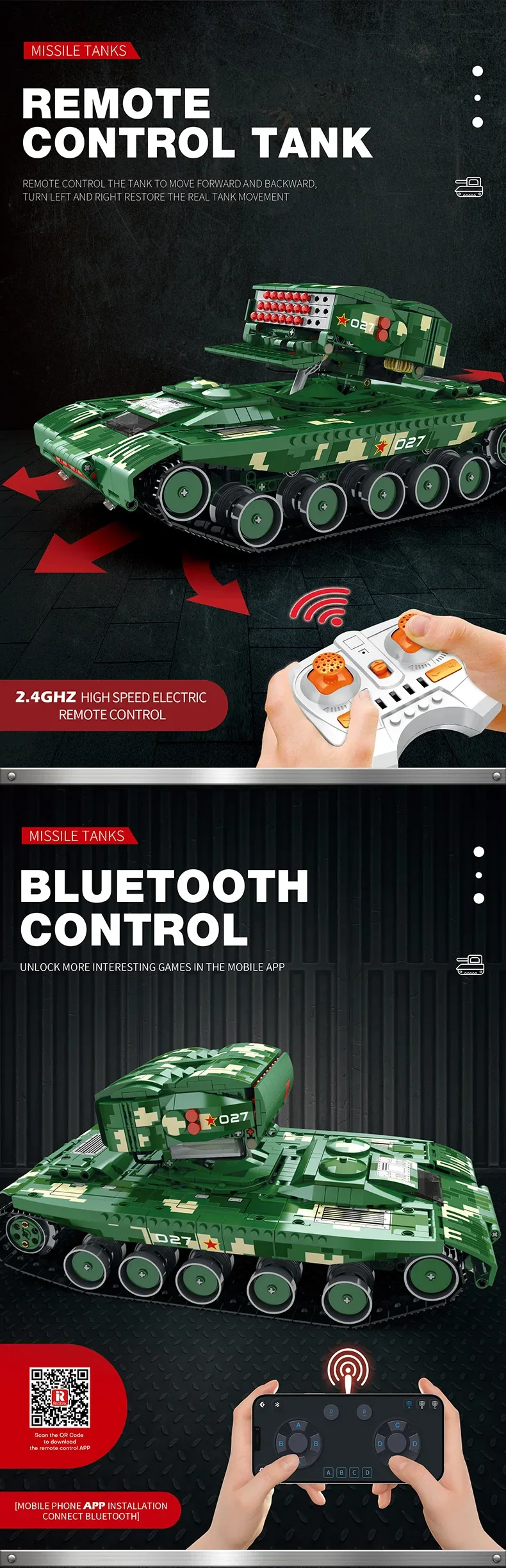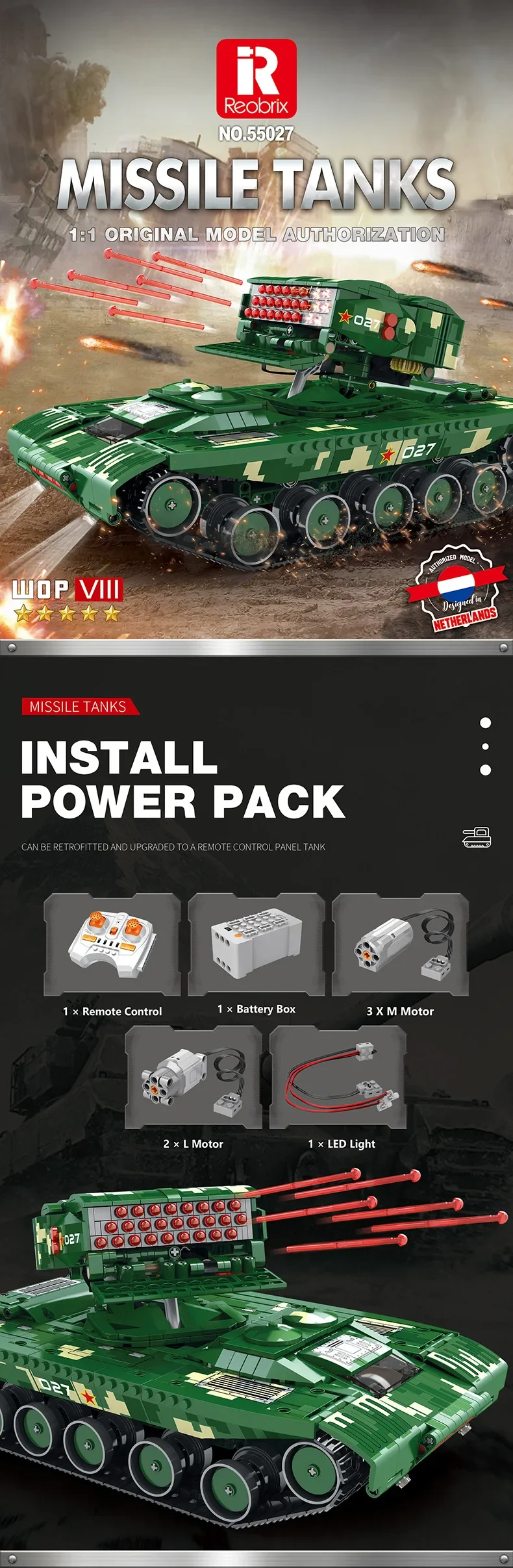 Reobrix 55027 Missile Tank Military series Model Building blocks Remote Control building blocks Tank Toy gift for children
