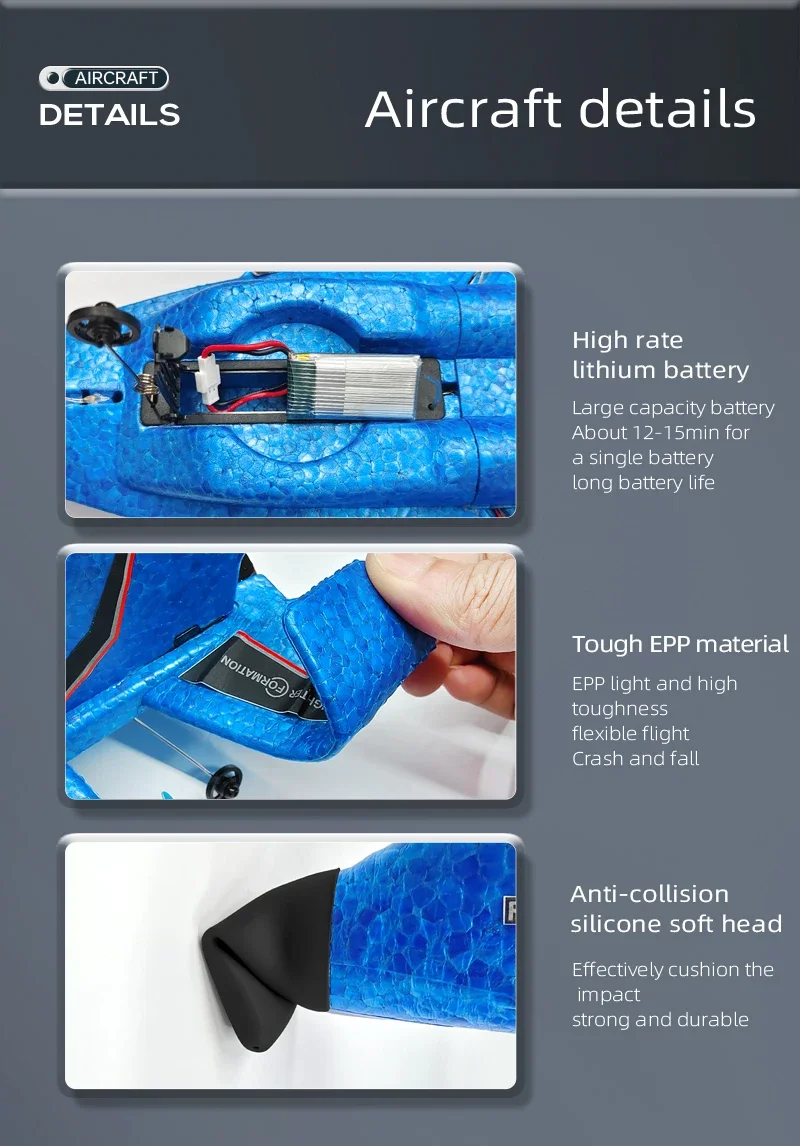 Durable EPP Material: The airplane body is made of high-toughness EPP material that is crash-resistant.