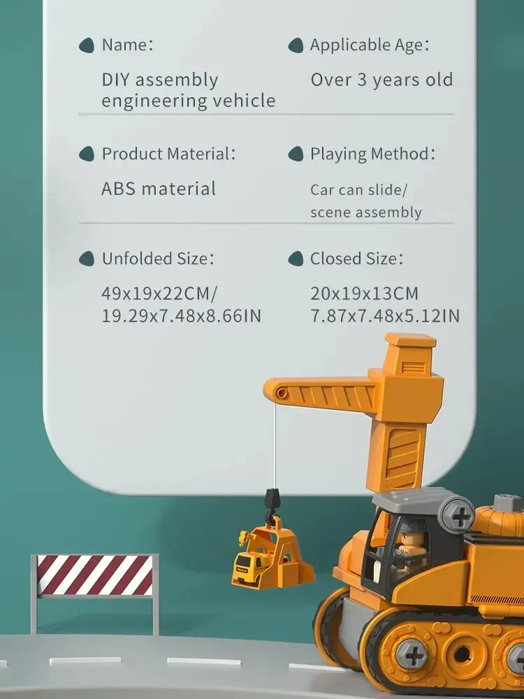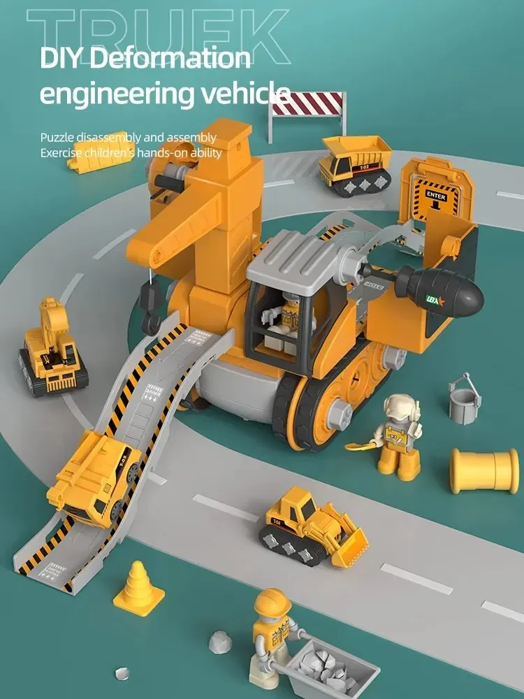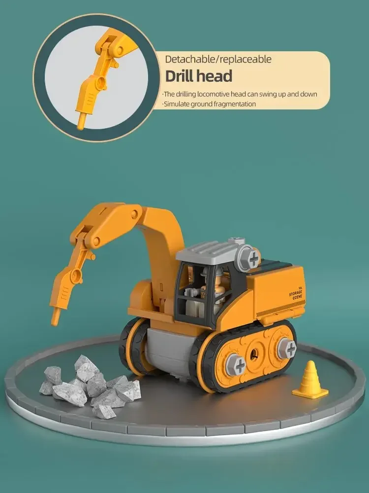 Take Apart Toy Construction Trucks with Electric Drill.Construction Toy Set. DIY Assembly Stem Toys Trucks for Boys Girls Gift