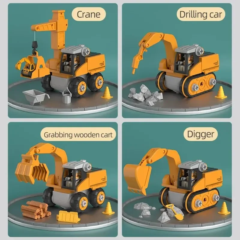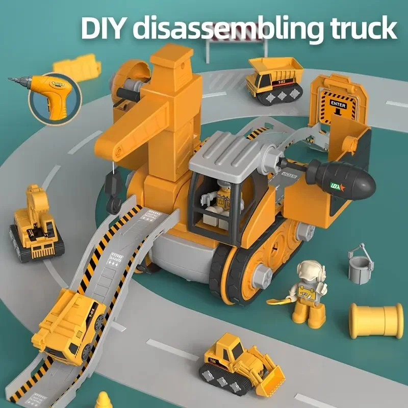Take Apart Toy Construction Trucks with Electric Drill.Construction Toy Set. DIY Assembly Stem Toys Trucks for Boys Girls Gift