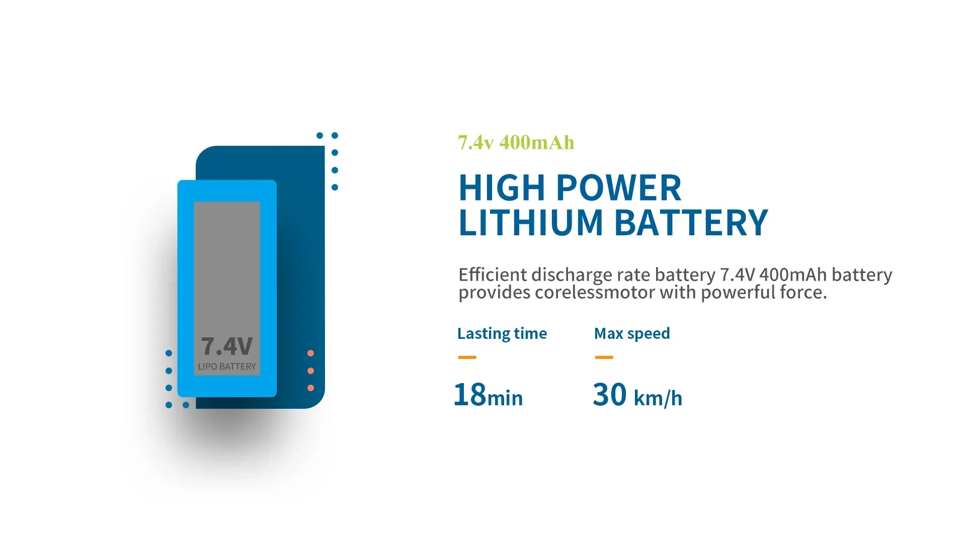 Efficient discharge rate battery 7.4V 400mAh battery provides corelessmotor with powerful force.