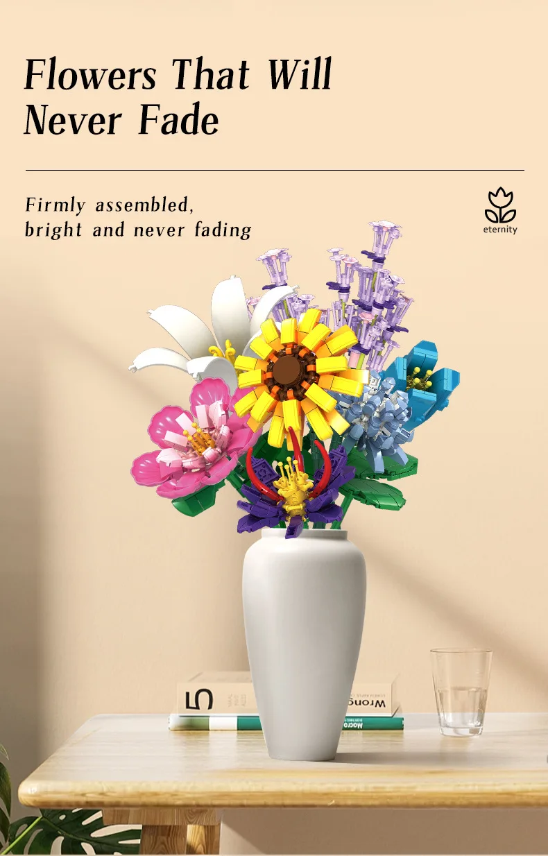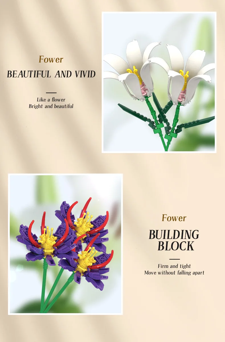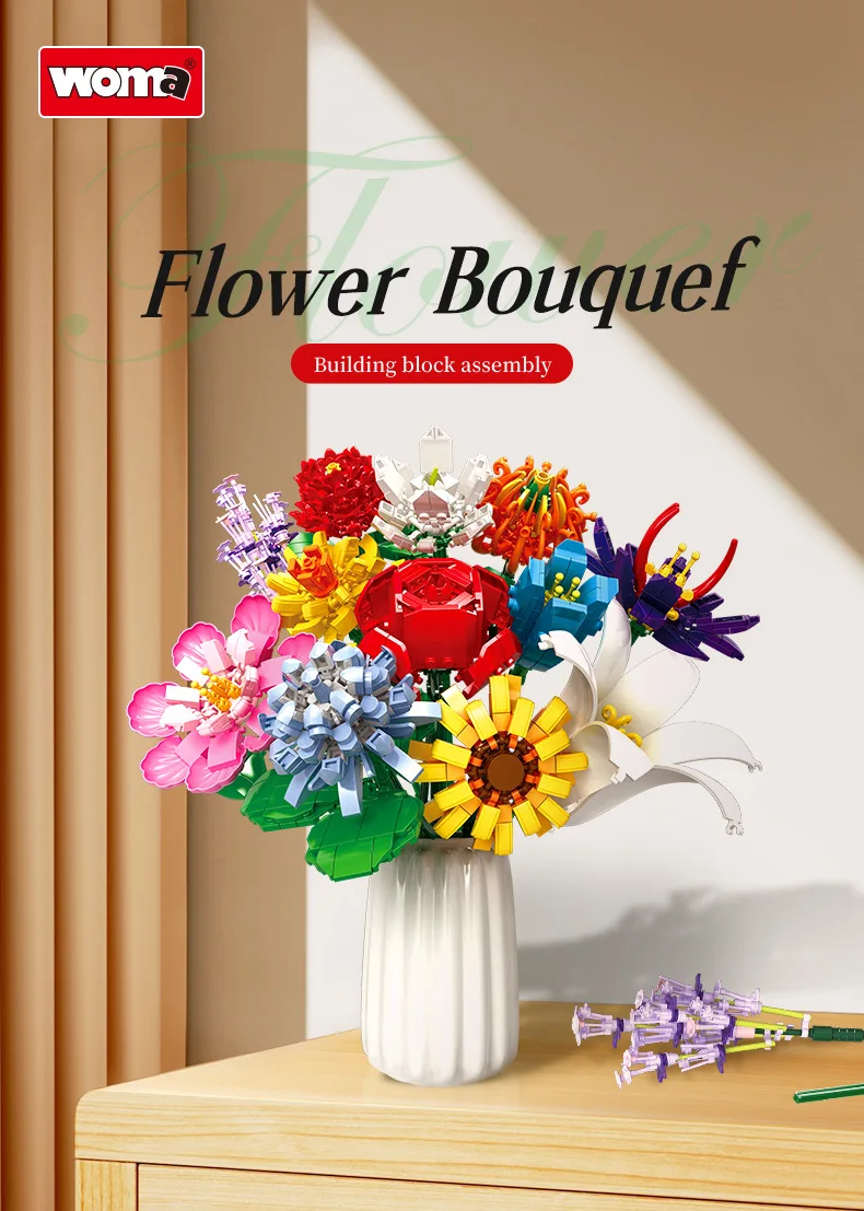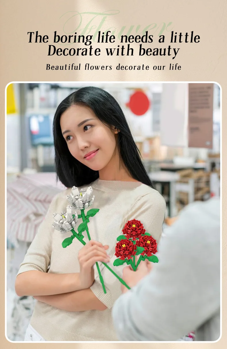 WOMA Building block simulation bouquet assembly rose small particle building block creative desktop decoration toy