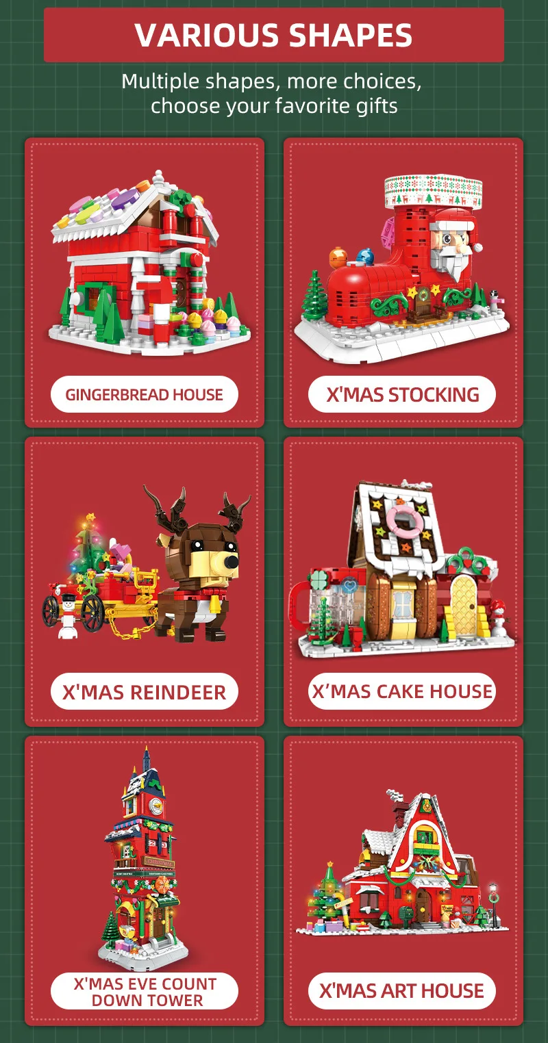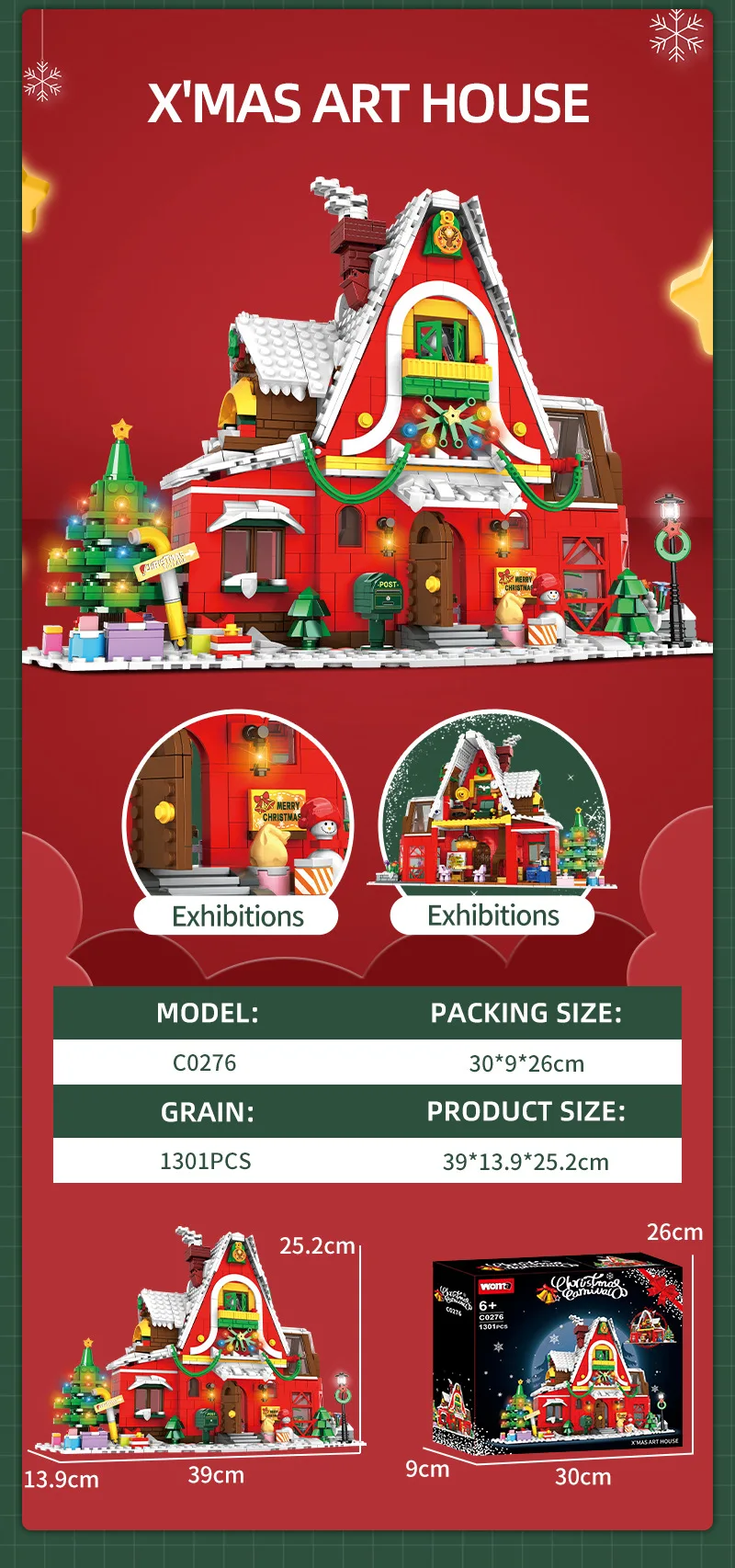 WOMA Christmas Building Blocks Series Gingerbread Man Candy House Castle with Lights Boys Girls Holiday Gifts Christmas Gifts