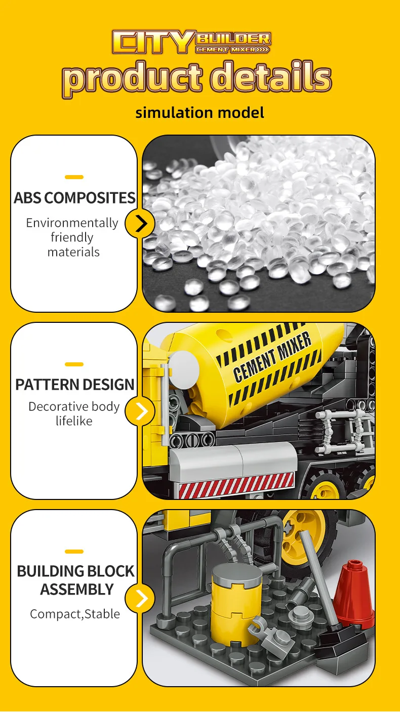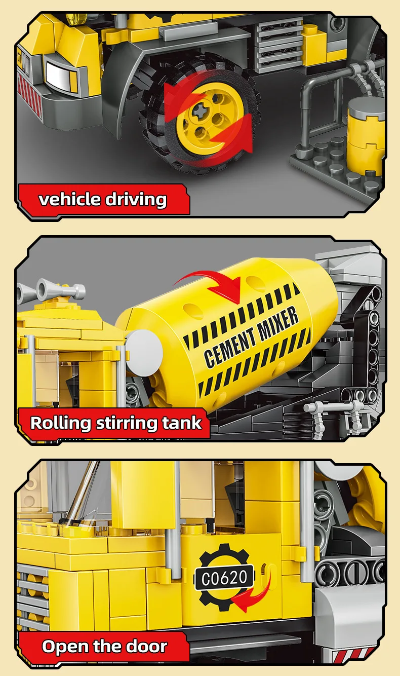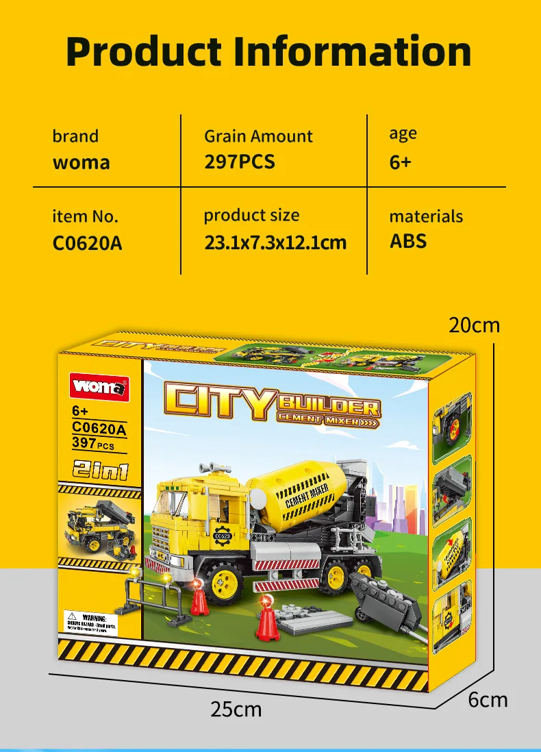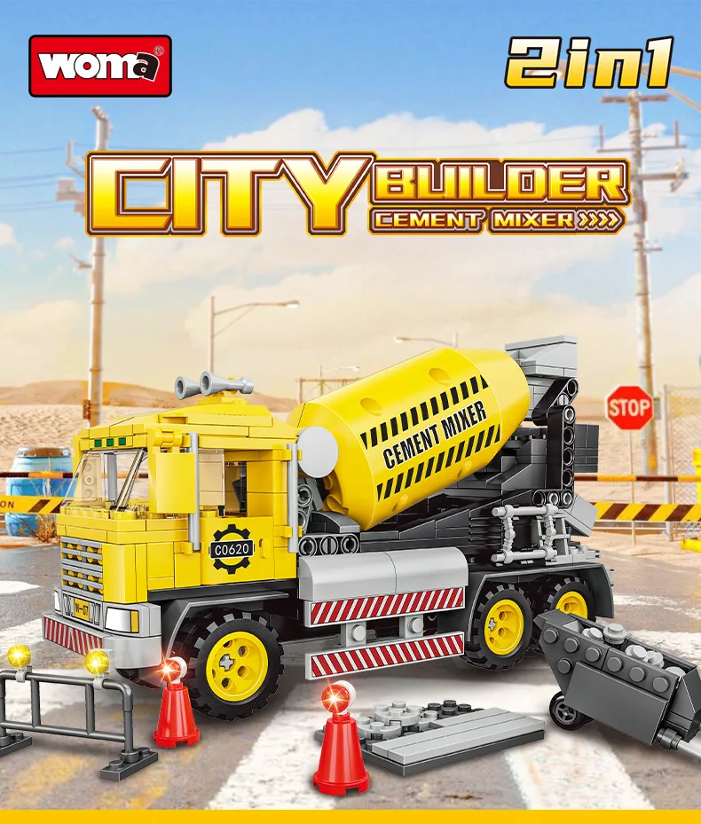 WOMA Construction City Builder Mixing Truck 2-in-1 Children’s Toy Small Particle Building Blocks Festival Gift